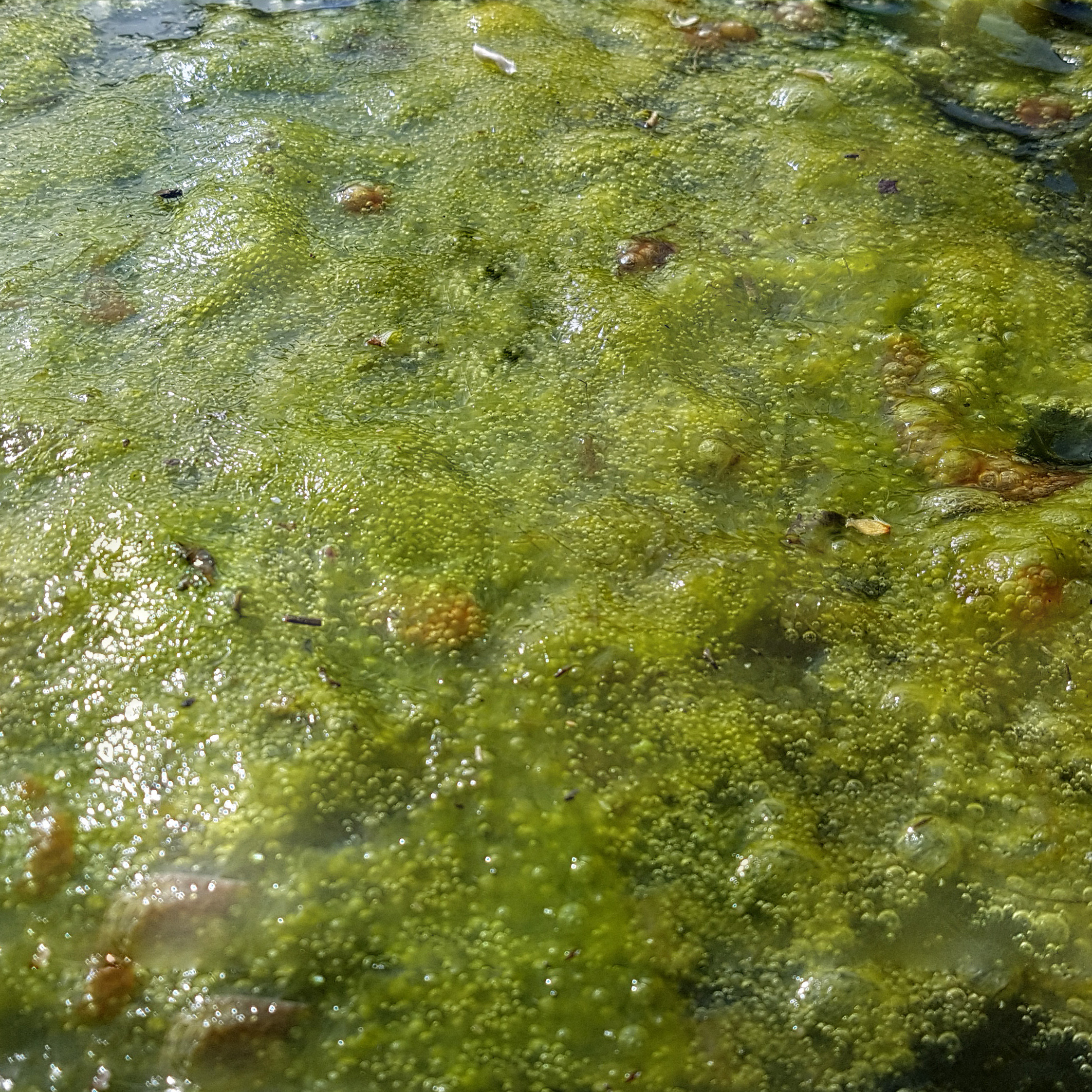 Algen wachsen durch den Phosphatgehalt im Wasser und durch Photosynthese!